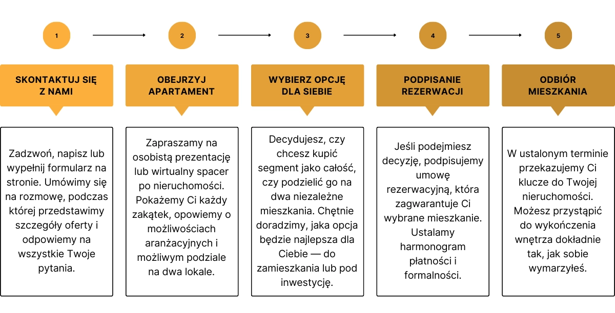 Każdy segment oddawany jest w stanie deweloperskim, co daje Ci nieograniczone możliwości wykończenia wnętrza według własnych potrzeb i gustu. To idealne rozwiązanie, jeśli marzysz o stworzeniu przestrzeni dopasowanej do Twojego stylu życia – od podłóg, przez ściany, aż po instalacje i oświetlenie.